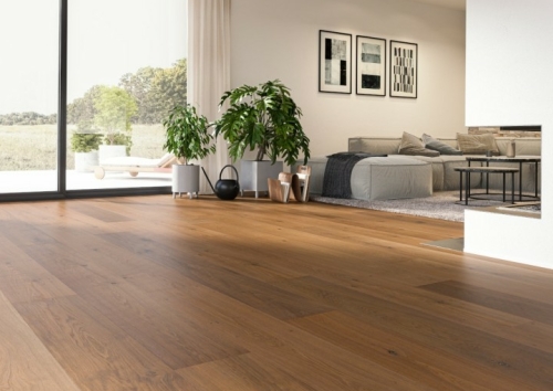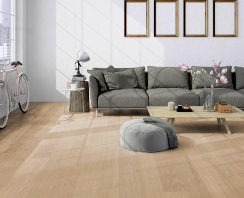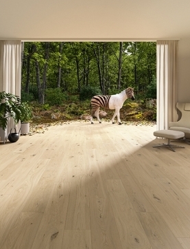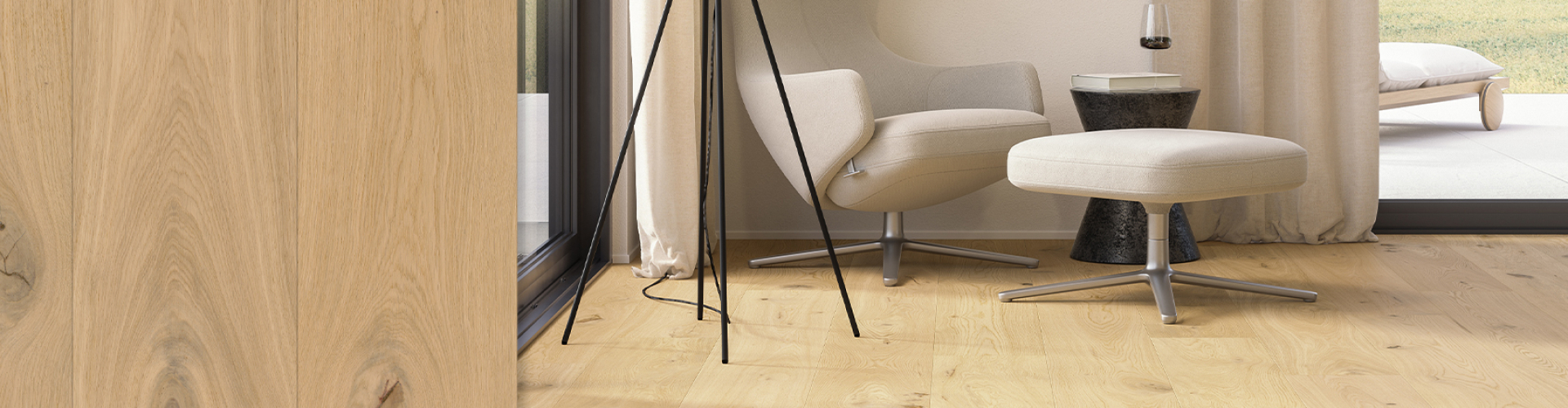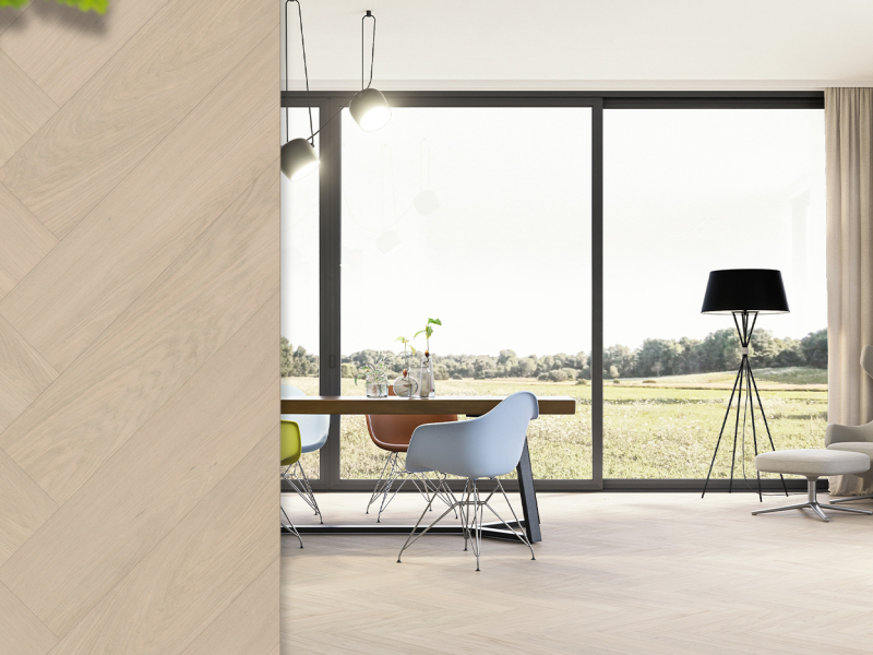 Deze technologie vult de poriën van het hout met een speciaal poeder van houtvezels, mineralen en bindmiddelen. Vervolgens wordt alles onder enorme hitte en hoge druk versmolten met een designlaag van echt hout tot een duurzame, stabiele vloer die jarenlang meegaat.